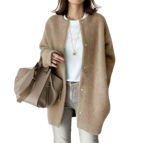 Cárdigan de cachemir elegante y ligero pensado para un look actual y fácil de combinar. acabado tipo ante. Una pieza versátil para el día a día y para planes más especiales.